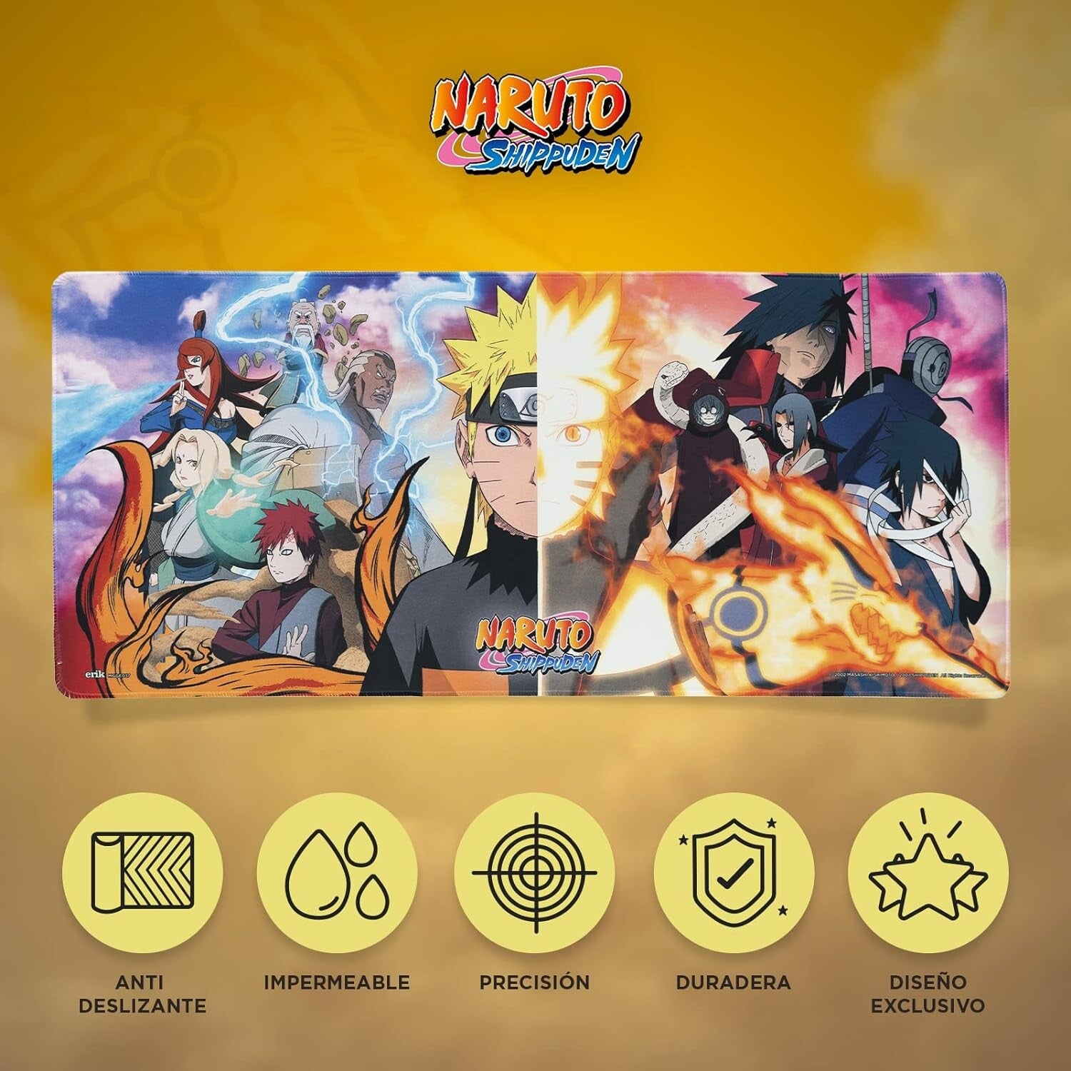 Personaliza tu escritorio con esta fantástica alfombrilla tamaño XL de Naruto. Teclado y ratón entran perfectamente dentro de su superficie impermeable de alta densidad, con bordes reforzados y base de goma antideslizante.